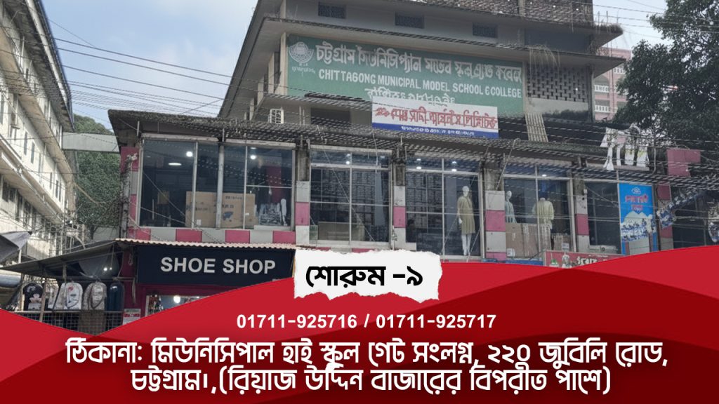 মিউনিসিপাল হাই স্কুল গেট সংলগ্ন, ২২০ জুবিলি রোড, চট্টগ্রাম।,(রিয়াজ উদ্দিন বাজারের বিপরীত পাশে)